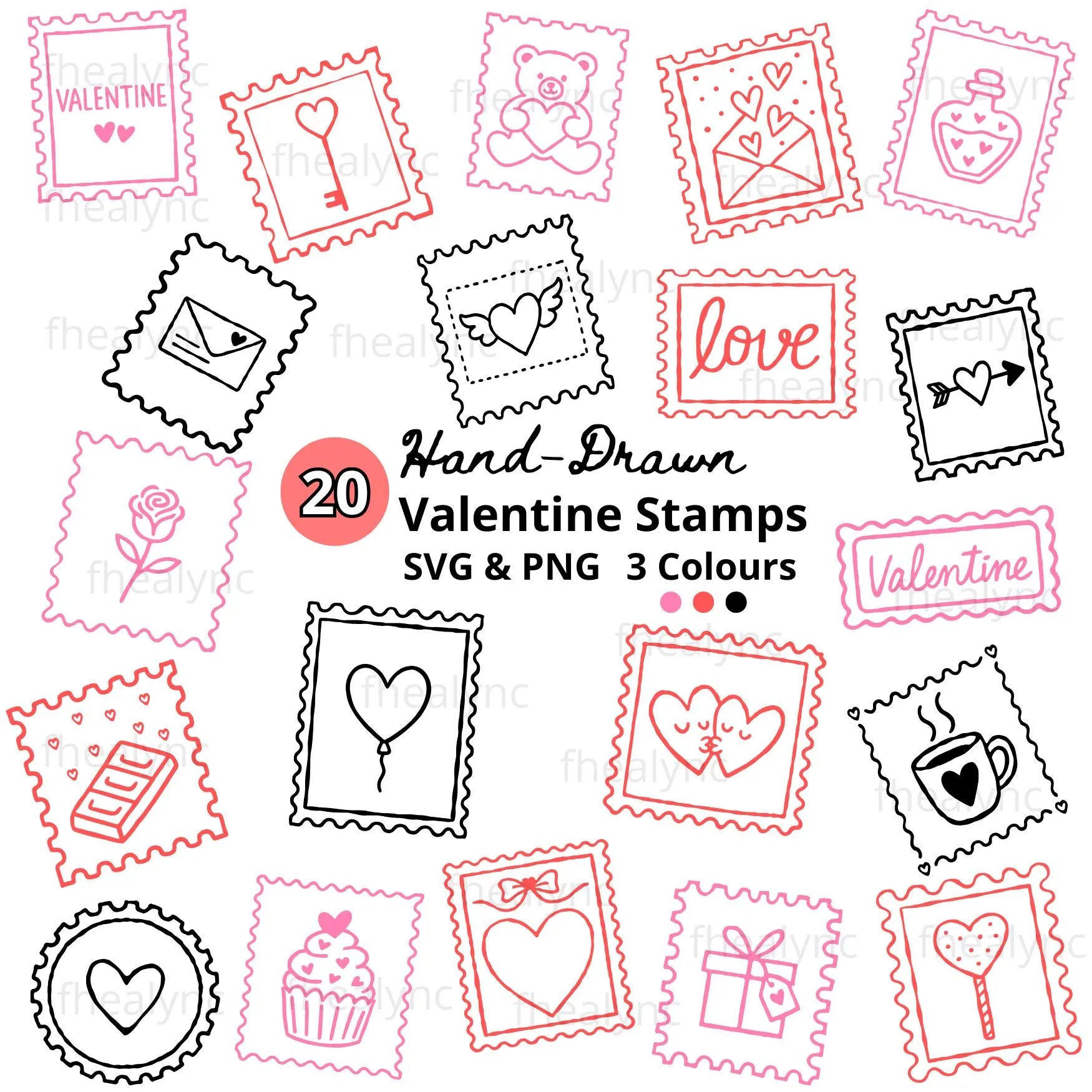 - Hand Drawn Valentine Stamps SVG Bundle - SVG, and PNG files
