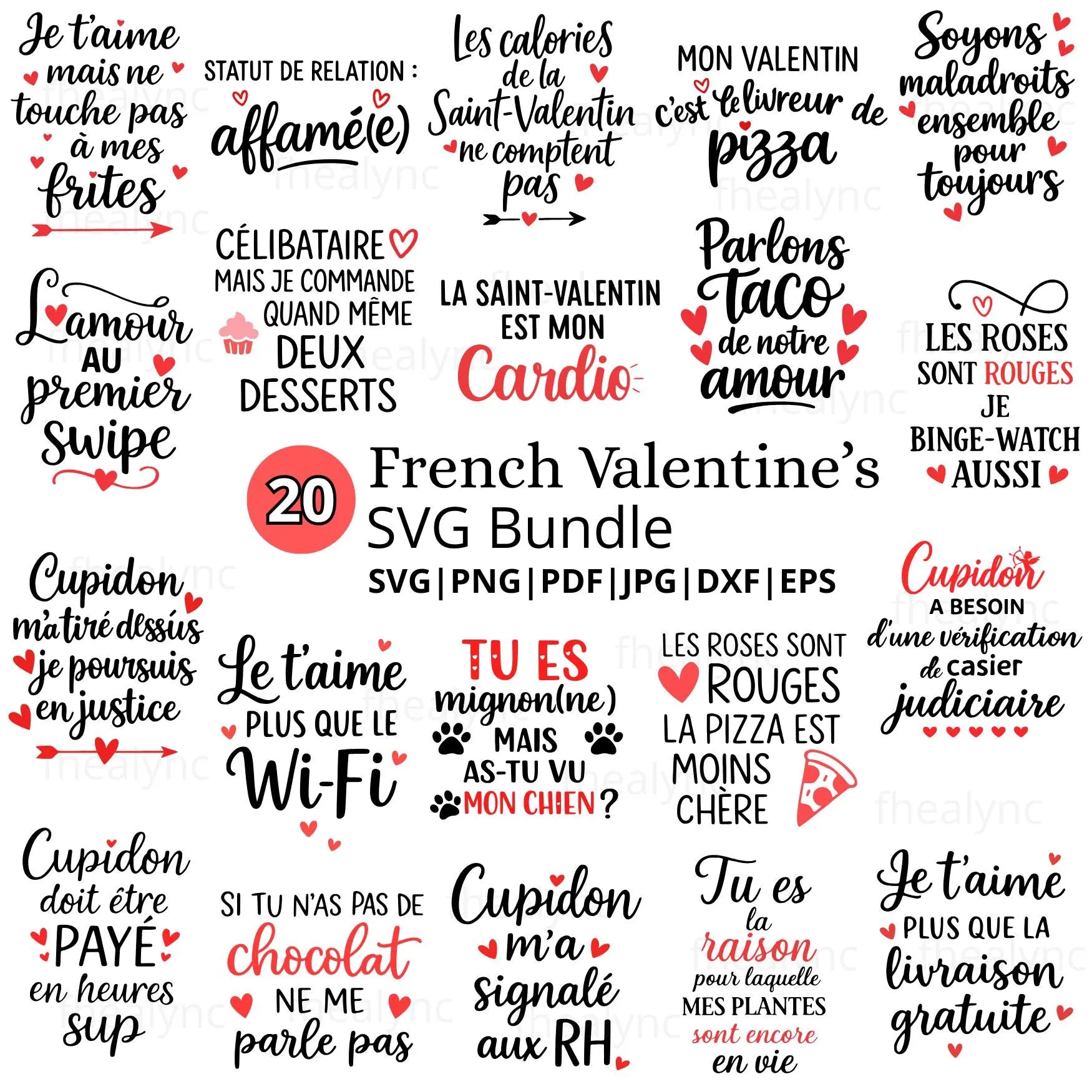 French Valentine SVG Bundle, Funny Love Quotes, 20 Designs (Digital Download)